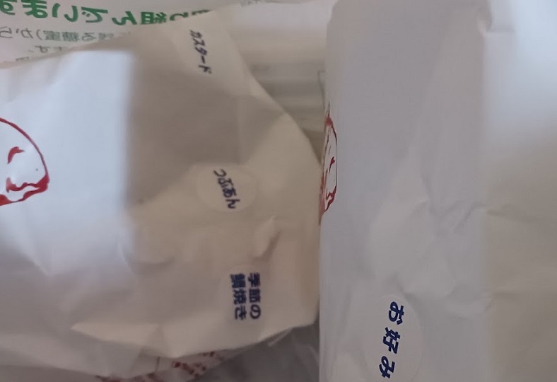 秋セットはつぶあん2つ・カスタード1つ・季節のたい焼き(サツマイモ)1つ・お好み鯛焼き2つでした。